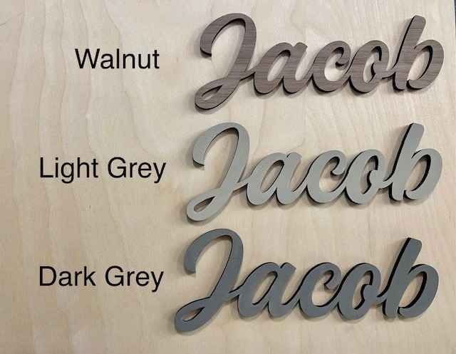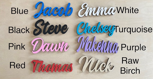 Our collage frames are laser cut and engraved from 1/4″ Birch plywood with your choice of Birch, black, grey or white front and your choice of color for your name. Middle layer is clear acrylic to protect your photos. To add your pictures simply unscrew the back to separate the binding screws, to hold your picture in place we suggest taping it to the back board with regular tape or double sided tape. Hangs with a regular picture nail from the sawtooth hanger attached to the back of the frame.