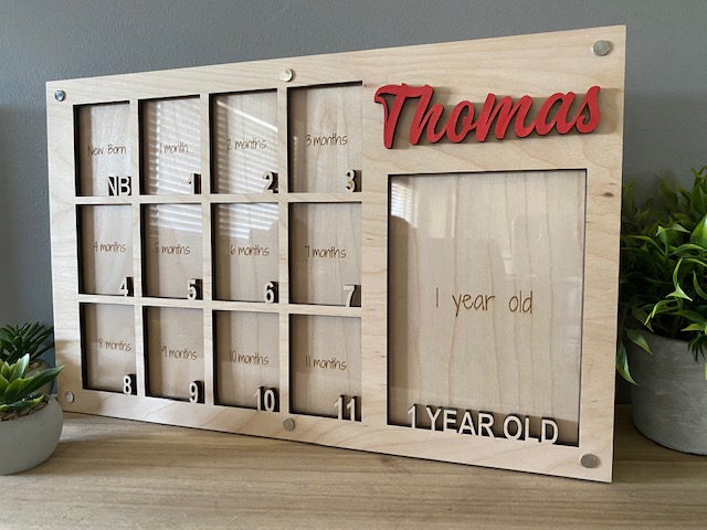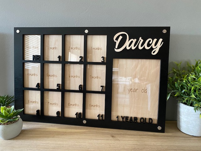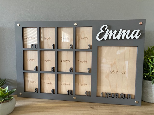 Display your baby’s monthly milestones from newborn to 1 year old with our personalized monthly photo frame.