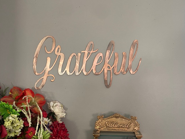 Feature our grateful metal word sign in any room of your home!