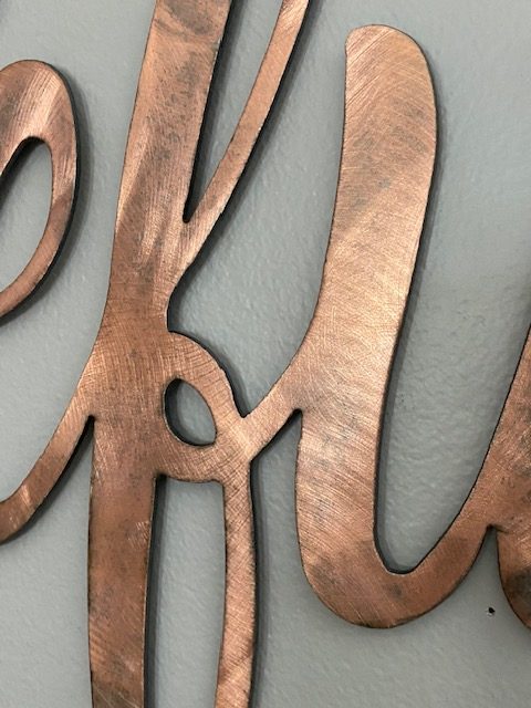 Our popular designed script fonts make beautiful Metal word art. This lovely metal wall hanging will make a great Decoration or Gift. A great wall hanging as part of your home decor or some words of inspiration or decoration to hang just about anywhere you’d like indoor or outdoor : )