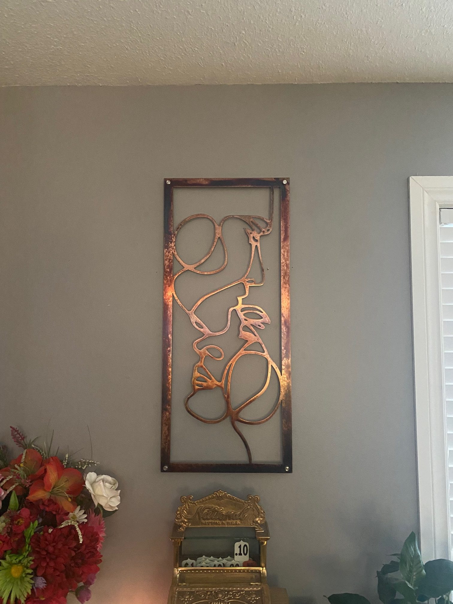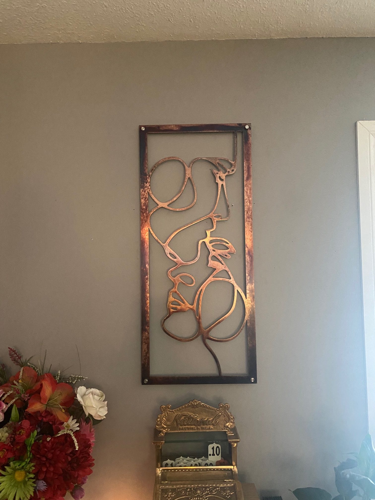 This simple yet elegant man and woman love metal wall art will make a beautiful addition to your living room or bedroom decor.