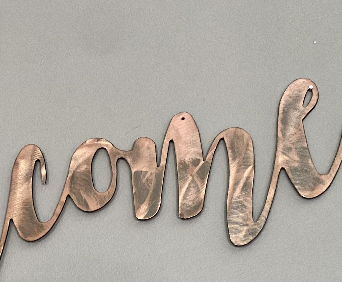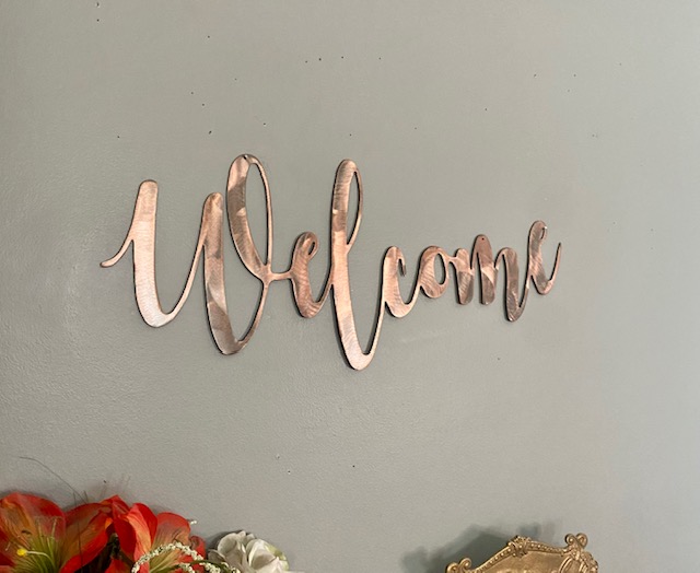 Our popular custom designed script font. This metal wall decoration will make a great Decoration or Gift. A great wall hanging as part of your home decor or some metal words of inspiration or decoration to hang just about anywhere you’d like : )