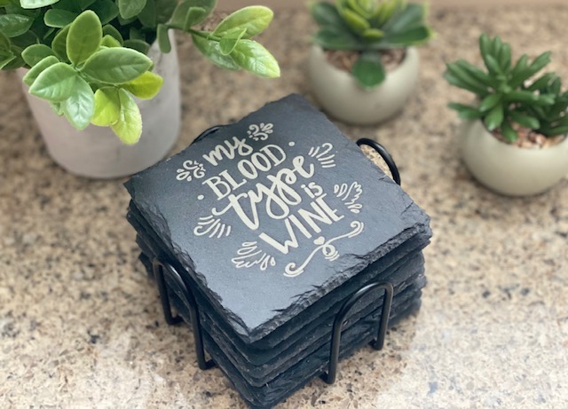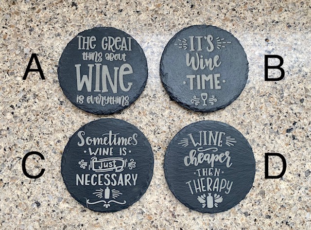 Our laser engraved slate stone coasters make great wedding or personal gifts! Choose from a set of 8 (one of each shown) or set of 4 (choose your set)